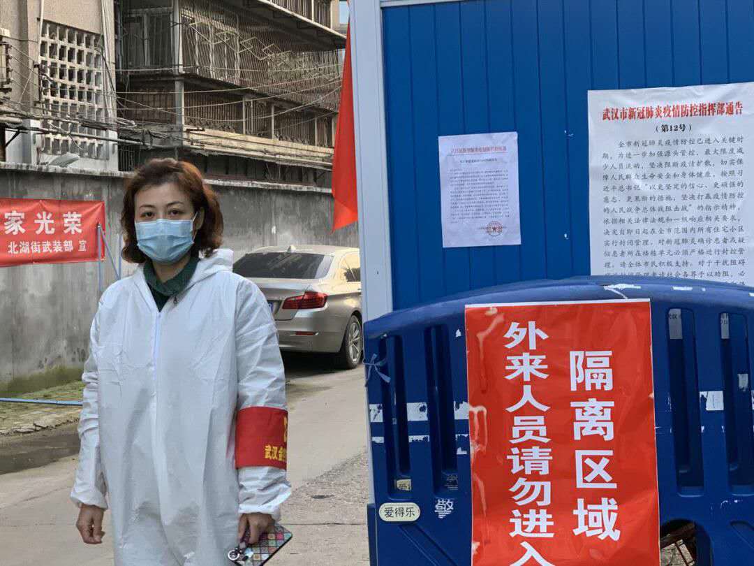 她所带领的小组负责德望街三个出入点的值守,其中德望街口值守点內辖两个老小区、一个近2000人居住的商品房新区、两个小型生鲜超市及一个液化气站。人员、车辆进出入较为频繁,是该街区范围内公认的高风险地方。同时,小组成员分别属于集团内两个不同公司,在实地查看了值守情况后,她主动请缨带领湖北金租突击队员值守德望街口卡点。在日常值守中,面对突发情况、风险事件,她总是第一时间站出来;运送物资,入户排查,她始终冲在第一个。带领着大家,鼓舞着大家。