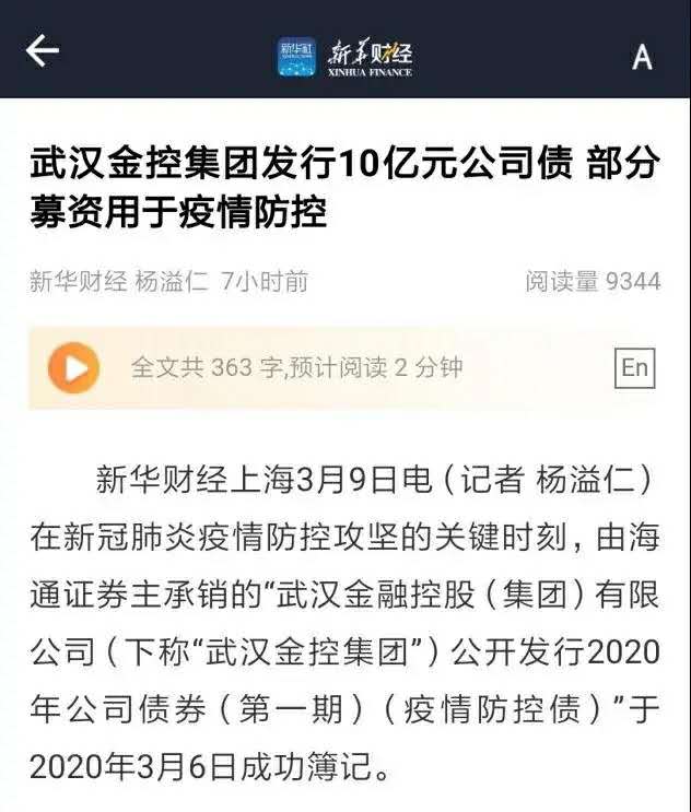 本期债券是集团成立以来发行的首只10年期以上债券,也是全国地方类金控企业中罕见的发行长期限债券品种的创举,在资本市场树立了武汉金控标杆。本期债券部分募集资金将用于集团疫情防控工作,为打赢新冠病毒疫情攻坚战提供了坚实的资金支持。